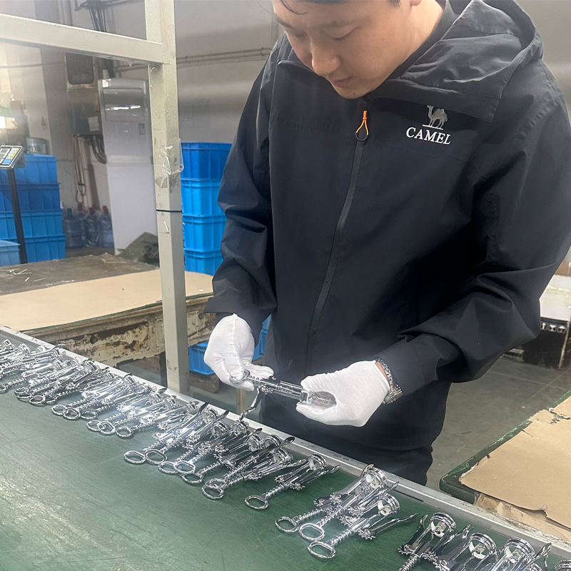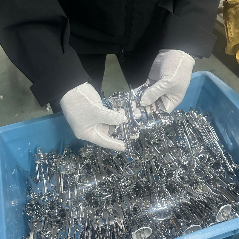 코르크 마개의 모든 구성 요소에 대한 코팅은 일반적으로 전기 도금 또는 페인팅 방법을 사용합니다. 이 그림에서는 전기 도금에 중점을 둘 것입니다. 전기 도금 처리는 아웃소싱 공급업체에 의해 완료되며, 이를 위해서는 해당 분야에서 수년간의 경험을 가진 고도로 전문화된 시설, 장비 및 산업 엔지니어와 수많은 기본 기술자 및 숙련된 작업자가 필요합니다. 이는 매우 복잡한 프로세스입니다. 우리는 30년의 업계 경험을 보유한 공급업체와 장기적인 협력을 유지하여 제품 안정성을 보장합니다. 이는 또한 제조 과정에서 발생하는 다양한 생산 문제를 신속하고 전문적이며 효율적으로 해결할 수 있도록 보장합니다. 이러한 배열은 와인 액세서리, 주방용품, 코르크 따개와 같은 품목의 생산 주기를 보장하는 동시에 고객의 판매 계획도 지원하는 데 도움이 됩니다.