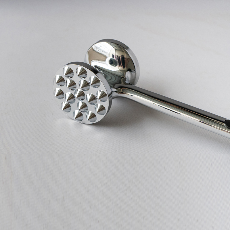 Jinhua Hanjia Commodity Co.,Ltd에서 생산하고 일체형 다이캐스팅 공법으로 제작한 아연 합금 연육제입니다. 금속 표면을 손으로 세심하게 연마하고 전체 제품을 환경 친화적인 안전한 전기 도금 공정을 거칩니다. 코팅을 부동태화 처리하여 강철처럼 단단하게 만듭니다. 길이 22cm로 성인 손에 편안하게 쥐기 좋은 크기입니다. 연육기 앞면과 뒷면의 무게 배분을 황금색으로 설계했습니다. 고기 연화제 헤드는 다양한 종류의 고기에 대해 서로 다른 두 개의 표면을 갖추고 있습니다. 손잡이 양쪽의 플라스틱 완충 장치는 장시간 사용에도 편안함을 제공합니다. 연화제의 전체 무게는 275g이며 디자인은 우수한 기능성을 보장하는 동시에 기존 모델에 비해 비용을 13% 이상 절감합니다. 청소도 매우 쉽습니다. 간단히 물로 헹구거나 식기 세척기를 사용할 수 있습니다.